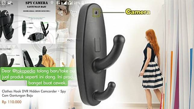 Ditemukan "Clothes Hook DVR Hidenn Camcorder" dijual di sebuah situs jual beli online, Tokopedia. Pada foto itu disampaikan akun ini keberatan dengan dijualnya barang tersebut.